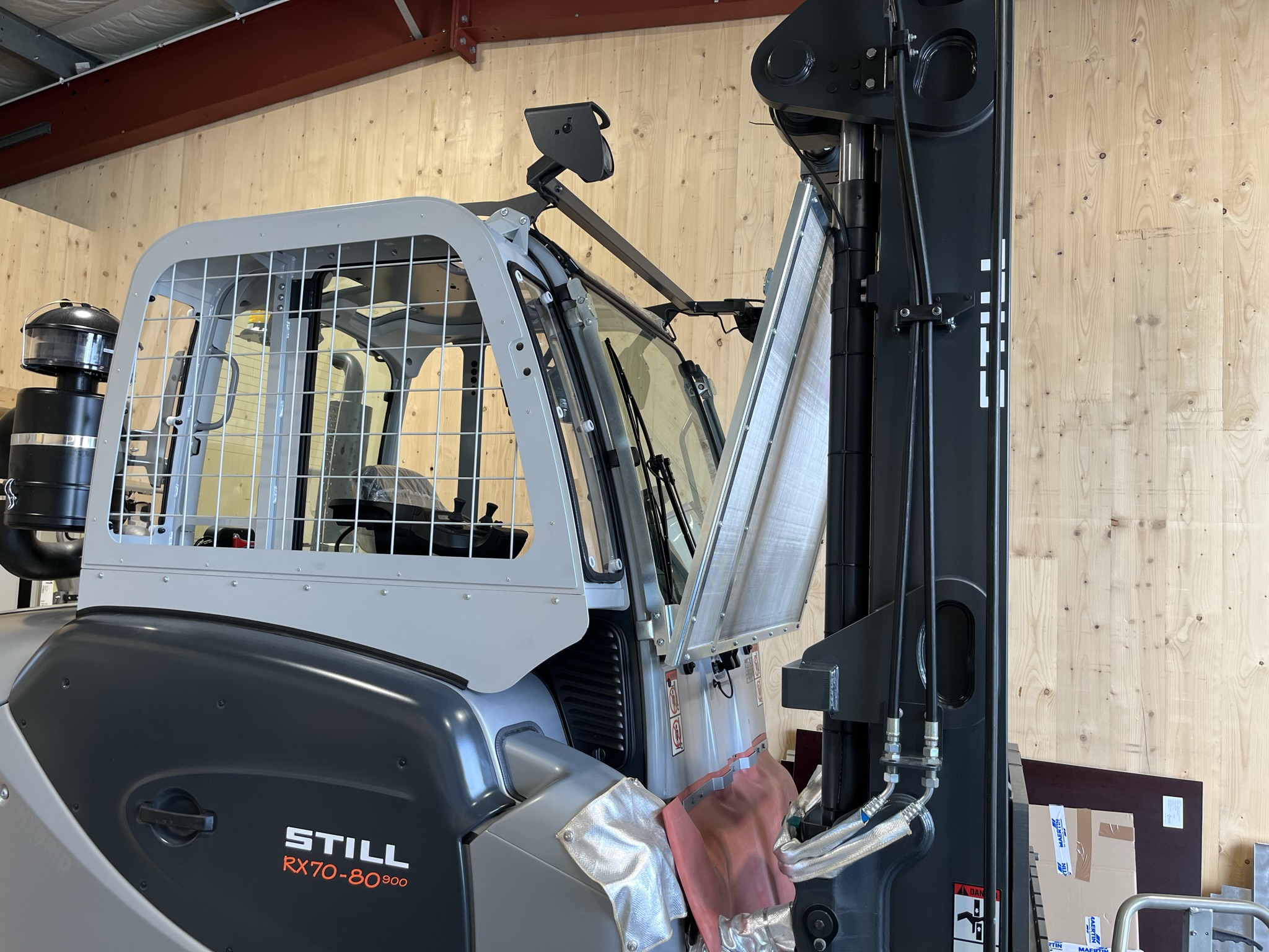 Unser maßgeschneiderter Hitzeschutz für die Frontscheiben Ihrer Gabelstapler bietet genau das – Schutz vor extremer Hitze und Funkenflug.