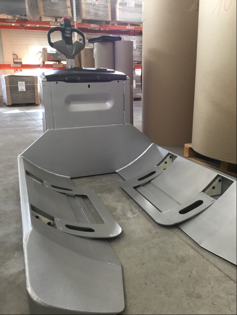 • Spezialisiertes Design: Unsere umgebauten Niederhubwagen sind präzise auf den Transport von Papierrollen abgestimmt, um Beschädigungen zu vermeiden und die Handhabung zu erleichtern.